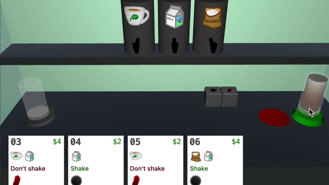 I built a game about making bubble tea for customers. More info and demo video here: https://anli.dev/projects/bubble-tea