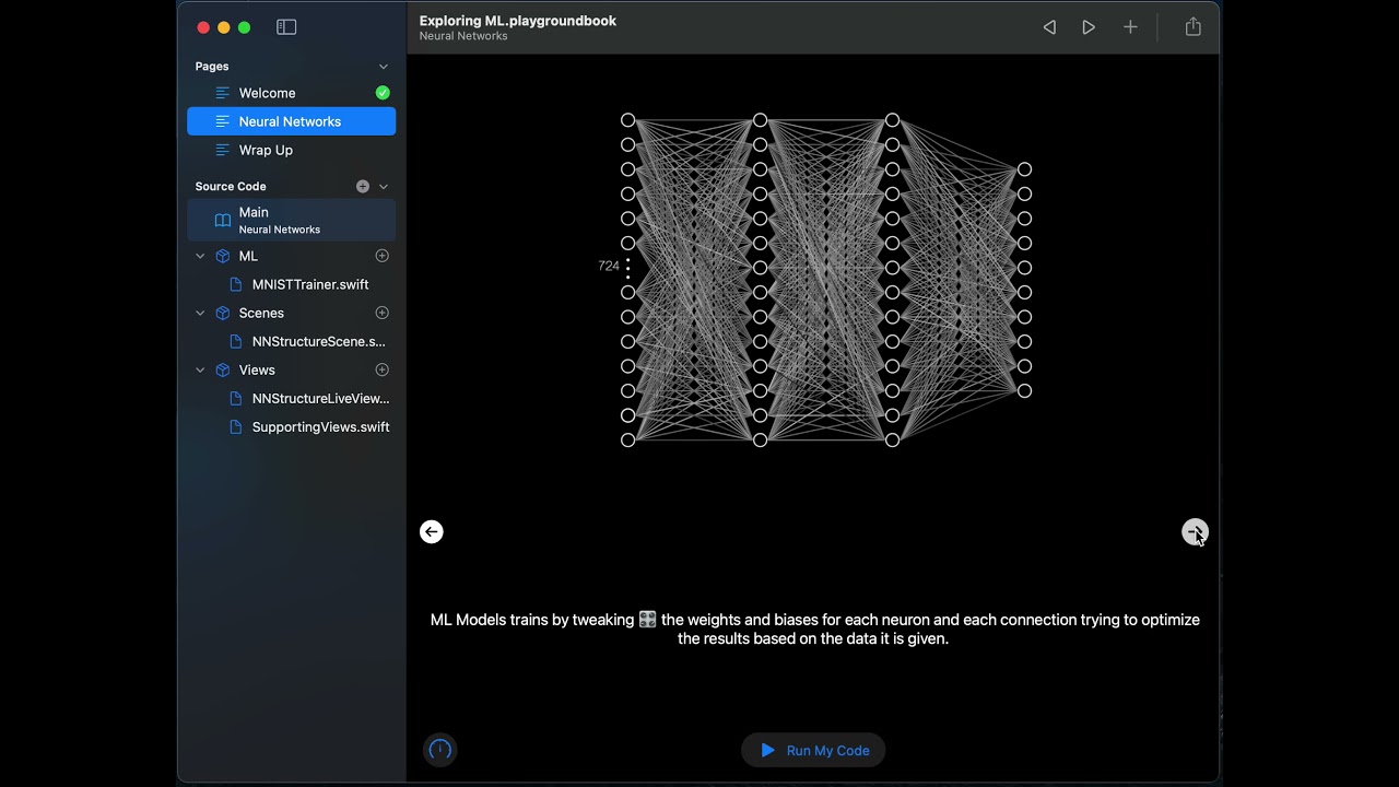 I made a playground showcasing how a Neural Network works and included a demo that trains a hand written digit classifier on device and showcases the real weights of the model changing and the neurons firing 💥.