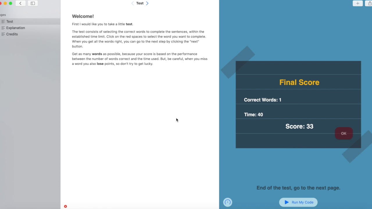 My project consists of putting the user in a small experience of what it is like to have dyslexia. Three small tests are carried out, in which the points are obtained by filling in the gaps with the correct words, in the shortest possible time, however, with each test completed this task becomes more difficult. In the last test, about 40% of each letter of the sentence is removed, decreasing the speed of reading the text, in order to simulate the reading experience of a dyslexic.