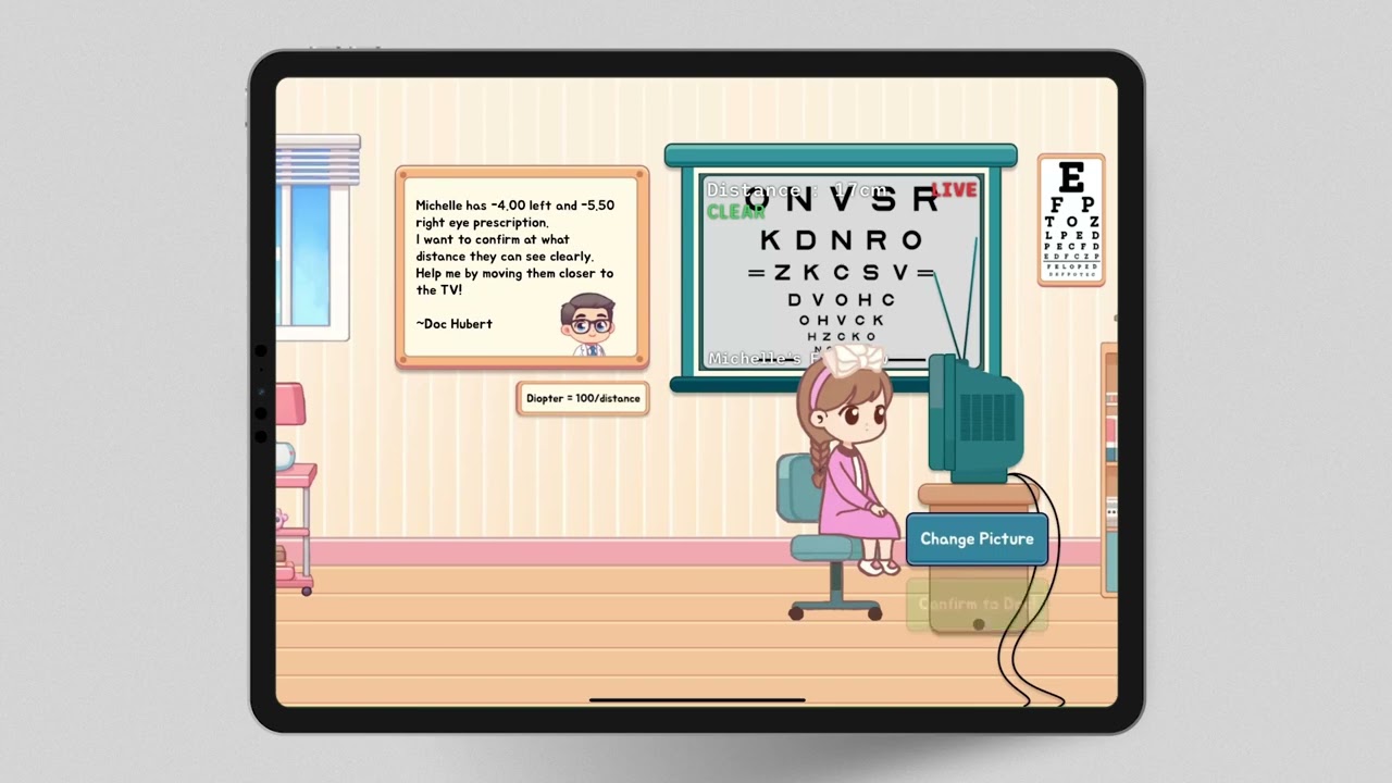 MyopiaSim is visual novel game to illustrate how the world looks with myopia, or nearsightedness, at different levels of diopters and distance. Through MyopiaSim, kids can experience visual impairment and learn to take better care of their eyes before it's too late, with a gamified approach like a conversational game in a step journey to make it kid-friendly.